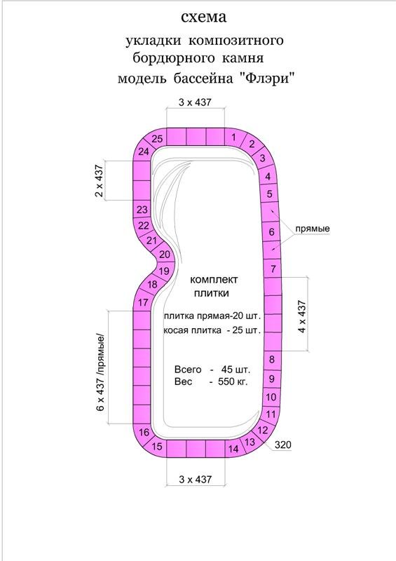 «Флери» – это бассейн, сочетающий в себе просторную плавательную зону, уютные зоны для отдыха и уникальные условия интеграции в ландшафт. Четкие геометрические формы с мягкими скруглениями создают элегантный современный силуэт. А специальная выемка вдоль борта – возможность для декоративных посадок (карликовый можжевельник, самшит, лаванда) или каскадного водопада.