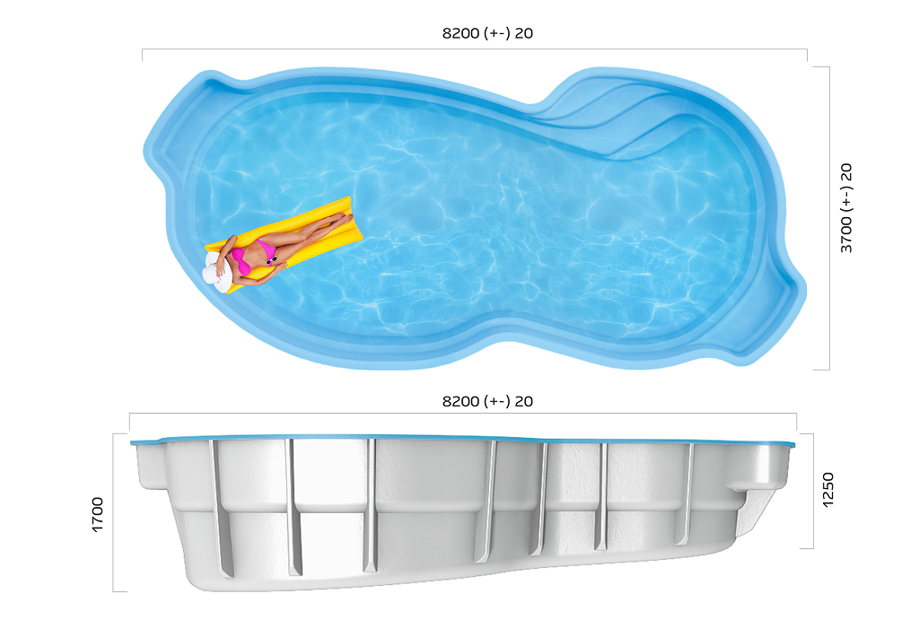 Просторная чаша бассейна оснащена удобными подводными диванами по бокам — вы сможете наслаждаться отдыхом, не покидая воды. А большая плавательная зона идеально подходит для водных игр и спортивного плавания — например, для семейного волейбола прямо в воде.