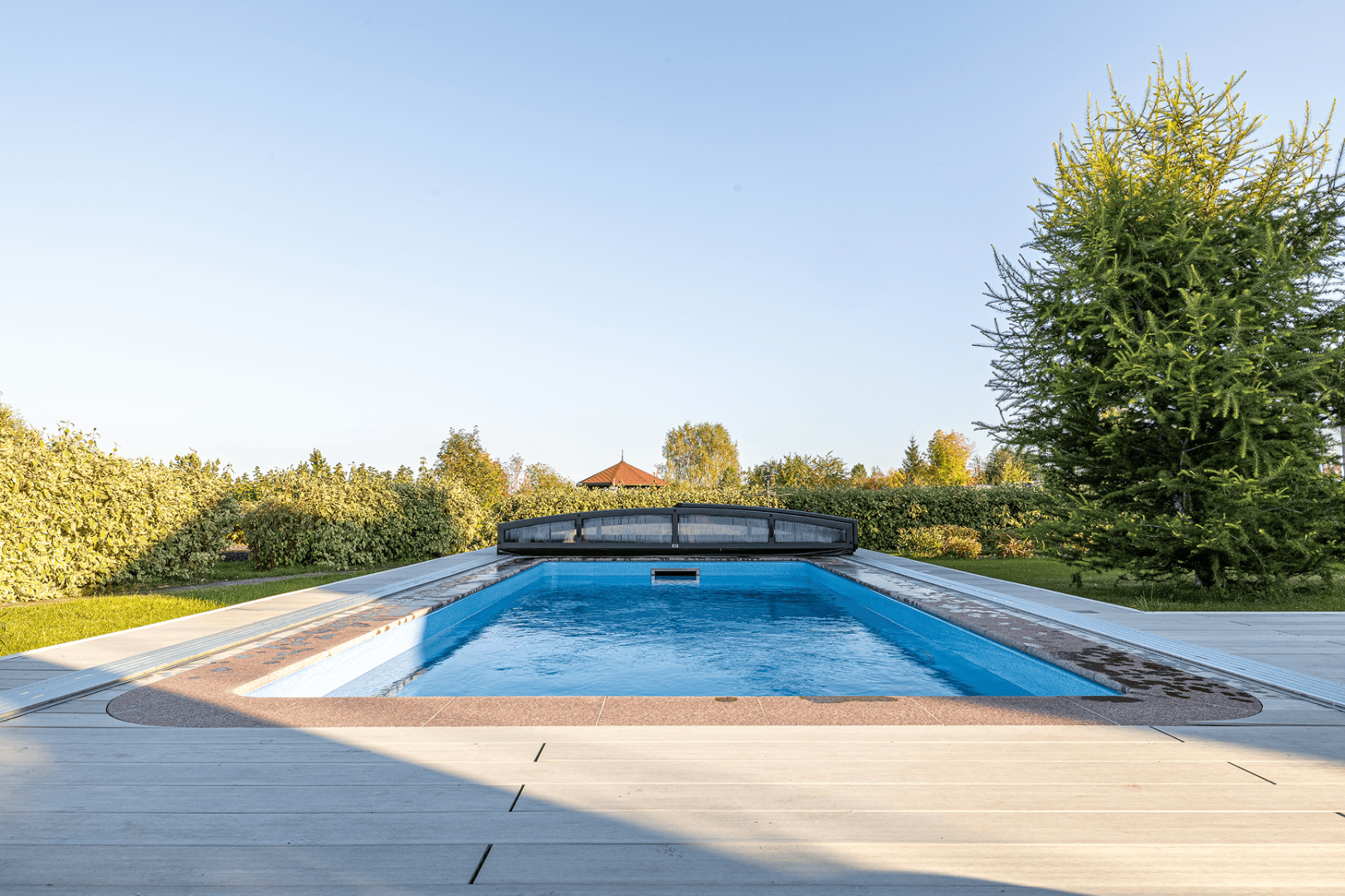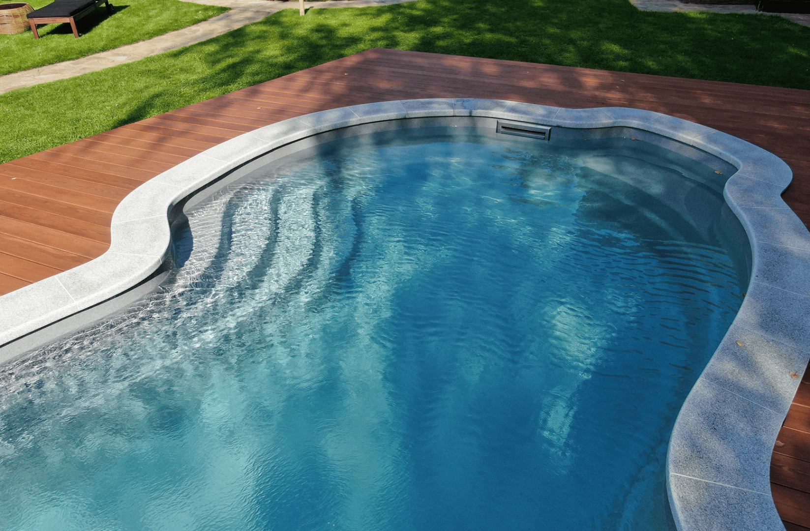 При создании покрытия «Хуко», дизайнеры FRANMER вдохновились цветом воды в тенистых лесных озерах. Глубокое сочетание сине-зеленого, с мягкими переливами голубого передает таинственную атмосферу лесных озер. Бассейн с покрытием «Хуко» настроит на спокойный отдых.